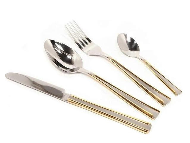 Полірована поверхня має високі гігієнічні та антикорозійні властивості, не поглинає запахи і легко миється. Ручки пристроїв мають матове полірування з позолоченими вставками з боків. Хороші столові прилади додадуть чарівність та вишуканість вашої святкової вечері.