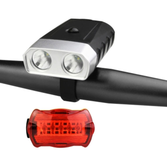 - Передня яскрава фара з потужними 2 світлодіодами XPE і 3 режимами світіння (100%, 50%, мигалка)