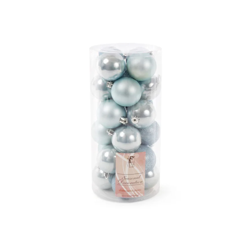 Набір святкових ялинкових куль діаметром 6 см, блакитний кольору, 24 шт.